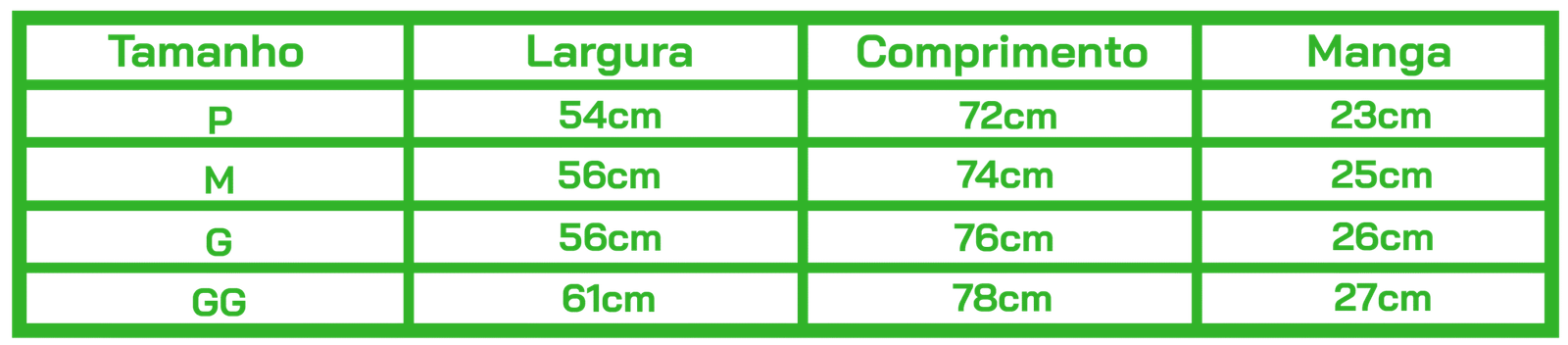Tabela de Medidas: